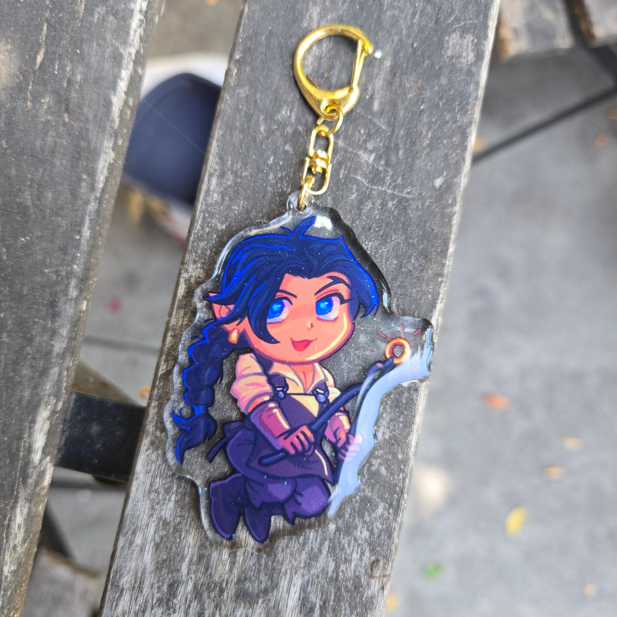 3" single-sided glitter epoxy acrylic keychain with gold clip!